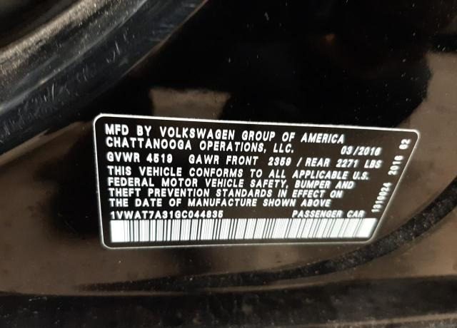 1VWAT7A31GC044835 Volkswagen Passat 2016 Black – history, photos, price