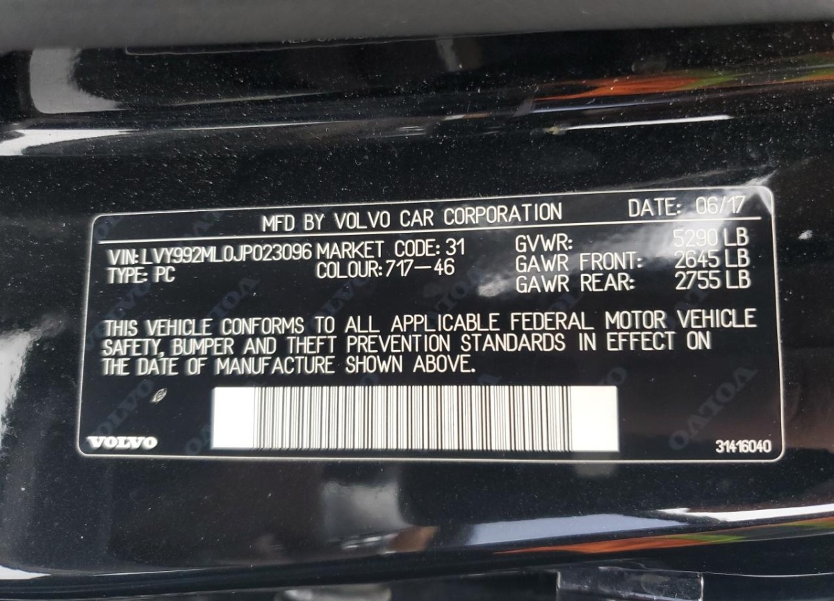 LVY992ML0JP023096 Volvo S90 2018 Black – history, photos, price