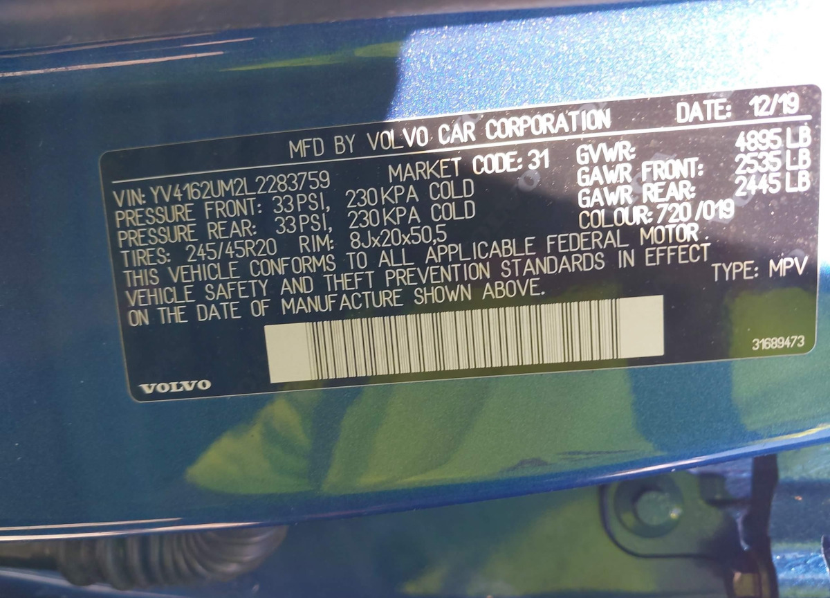 YV4162UM2L2283759 Volvo XC40 2020 Blue – history, photos, price