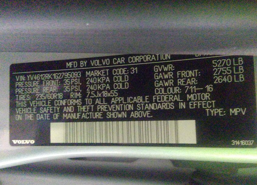 VIN:YV4612RK1G2795093