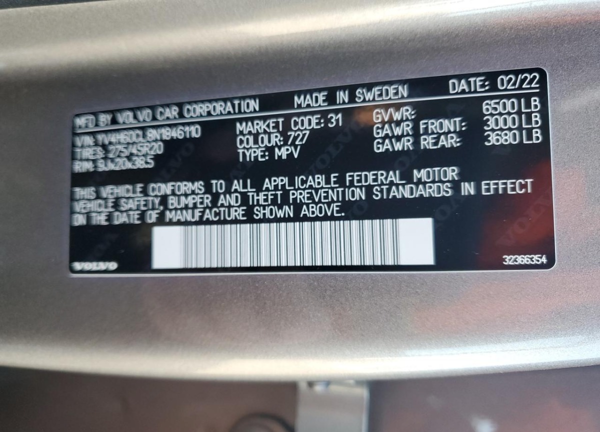 VIN:YV4H60CL8N1846110
