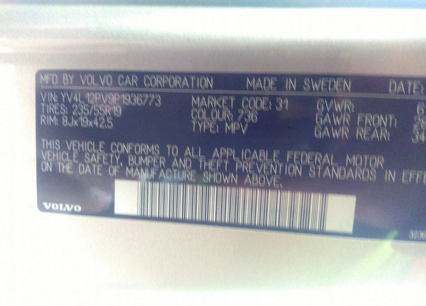 VIN:YV4L12PV9P1936773
